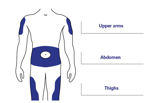 아래 사진과 같이 배, 허벅지, 팔 상완부에 주사하면 됩니다.