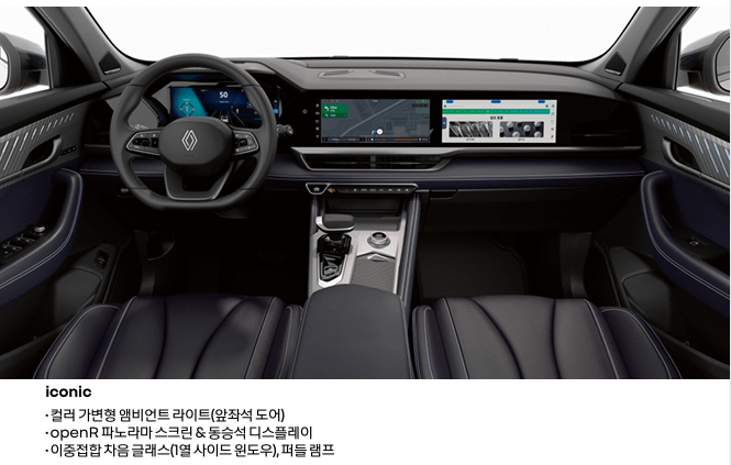 - openR 파노라마 스크린 (12.3인치 TFT 클러스터 + 12.3인치 센터 디스플레이)