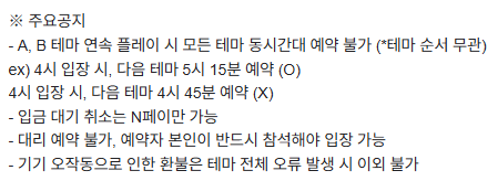 - 방탈출 1회차당 최대 12명 (6명씩 2팀 구성)